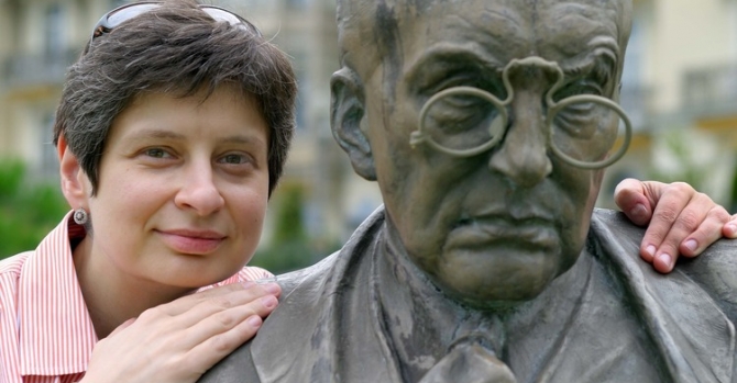 Нина Хрущева у памятника Владимиру Набокову в Монтре. Фото: ninakhrushcheva.wordpress.com