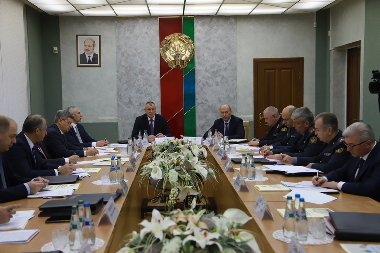 Игорь Шуневич и Андрей Втюрин проводят совещание по борьбе с наркотиками, 2018 год. Фота: mvd.gov.by