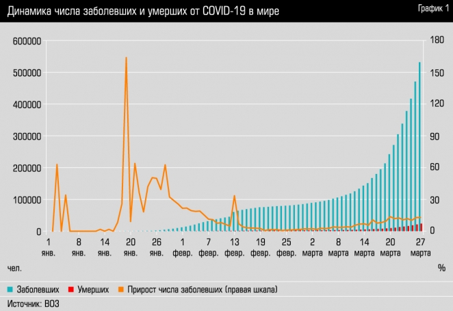 Известно, что у эпидемий есть сезоны — например, в Европе ежегодно осенью и зимой распространяется грипп, который может поразить до 20% населения. Причем смертность от него может быть высокой: по данным ВОЗ, от респираторных заболеваний, связанных с сезонным гриппом, в год умирает до 650 тыс. человек (в Европе — до 72 тыс.), то есть почти две тысячи в пересчете на один день. Именно столько жизней стал уносить COVID-19 к концу марта (плюс сезонный грипп никуда не делся), нагрузка на системы здравоохранения по всему миру резко возросла, что подталкивает вверх летальность от COVID-19, которая, однако, должна начать снижаться после прохождения пика пандемии.