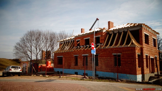 Строительство будущего кафе-бара с гостиничными номерами. Его должны были завершить в августе прошлого года, но работы продолжаются до сих пор