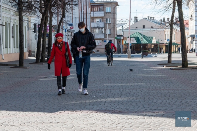 Люди в масках на улицах Могилева. Фото: «Белсат»