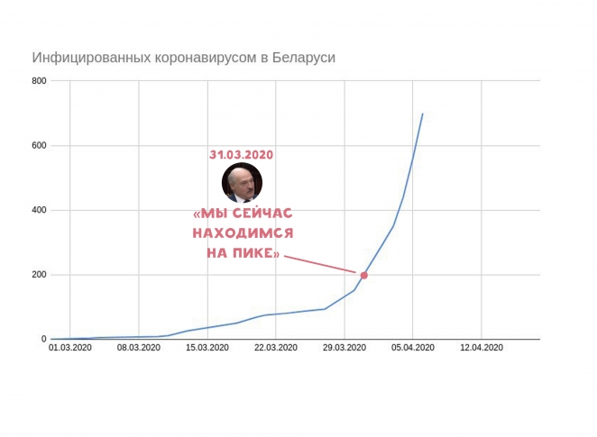 По состоянию на 7 апреля в Беларуси было зарегистрирован 861 случай коронавируса. По состоянию на 30-31 марта, когда Лукашенко заявил о пике, было 152 случая.