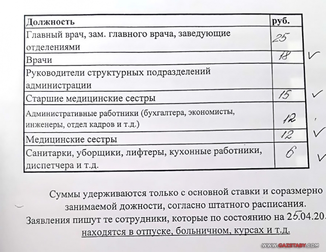 Коллеги прислали Ирине по вайберу копию приказа, где указано, какие суммы должны быть перечислены: 18 рублей – с врача, 15 – с медсестры. Причем с работающих вычтут автоматом, а тех, кто в отпуске или на больничном, требуют писать заявления, говорит врач. Документ якобы подписало областное управления здравоохранения.