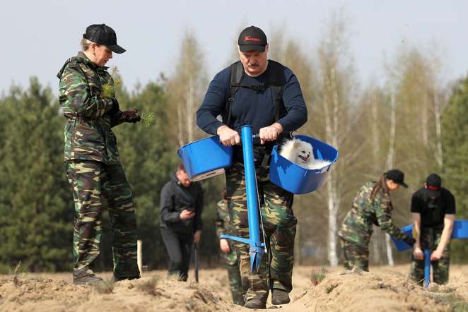 Александр Лукашенко принимает участие в субботнике. Фото: Максим Гучек / ТАСС