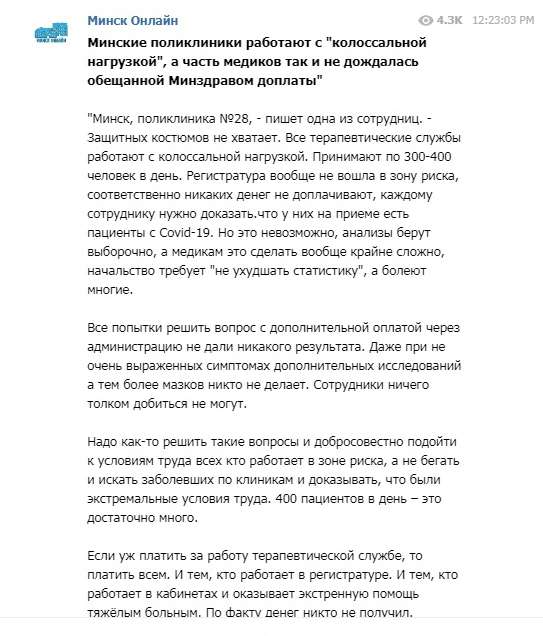 К слову, в Белорусском профсоюзе работников здравоохранения очень удивились тому, что медики недополучают выплаты.