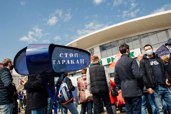 Пикет по сбору подписей возле Комаровского рынка в Минске. Фото: Таня Капитонава / «Белсат»