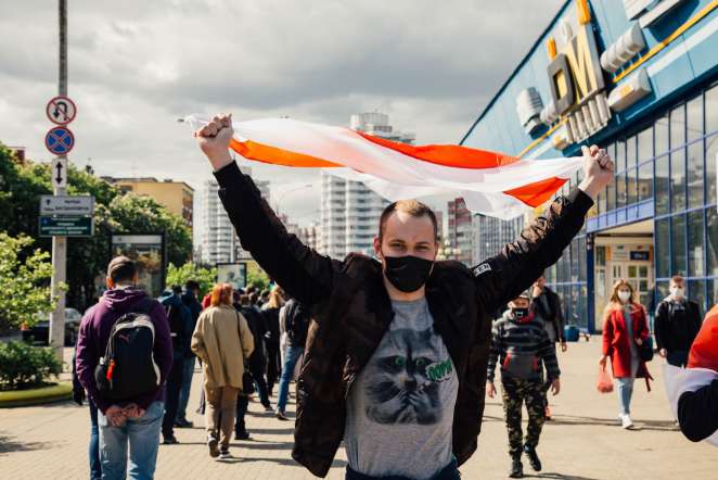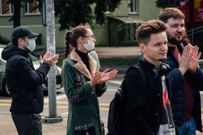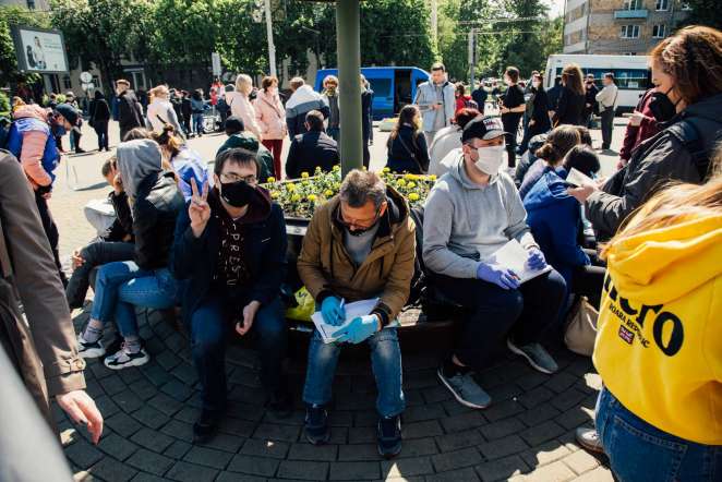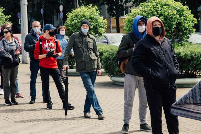 Очередь на пикете по сбору подписей за Светлану Тихановскую. Фото: Таня Капитонава / «Белсат»