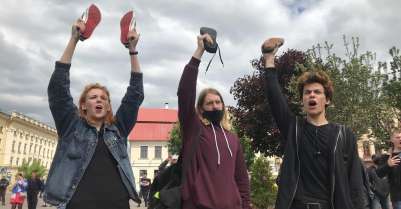 Кеды вместо тапок на пикете в Гродно. Фото: Belsat.eu