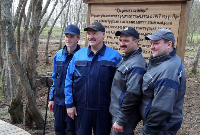 Николай, Александр, Виктор и Дмитрий Лукашенко после субботника в «Трофимовом источнике». 21 апреля 2018 года. Фото: пресс-служба главы Беларуси