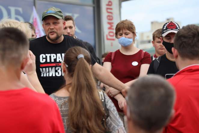 Сергей Тихановский на пикете в Могилеве. Фото: «Белсат»