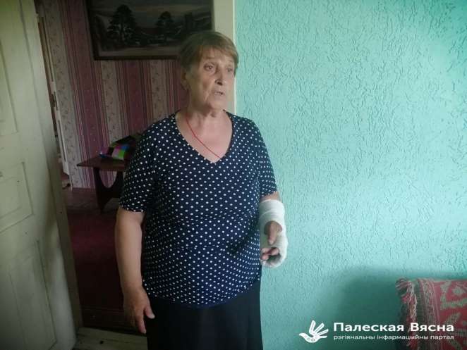 С Тамарой Федоровной правозащитники встретились в Мозыре. Она ездила в местный отдел Следственного комитета, который проводит проверку по факту нанесения ей неизвестными людьми в гражданской одежде телесных повреждений. Левая рука госпожи Тамары в гипсе по локоть. По дороге к Прудку она рассказывает, что ее сын вместе с еще двумя мозырскими ребятами, которых задержали 5 июня, и место нахождения которых родственники не могли узнать больше двух суток, нашелся в конце концов в Минске в Центре изоляции правонарушителей на переулке Окрестина.