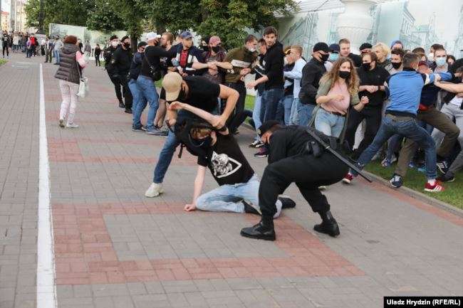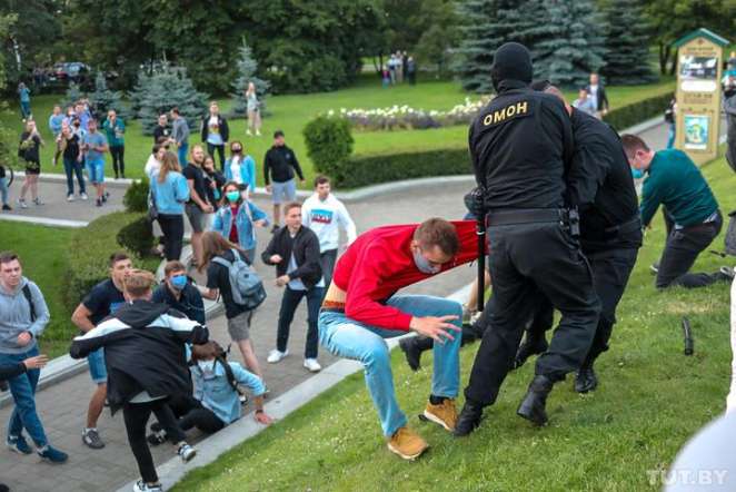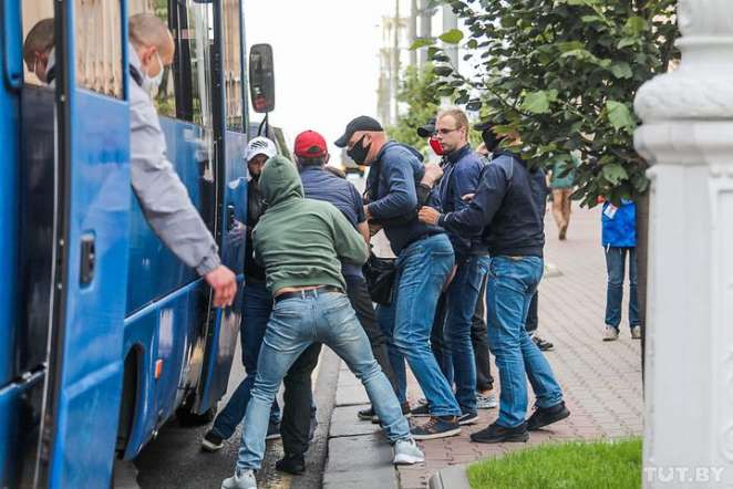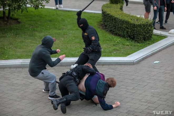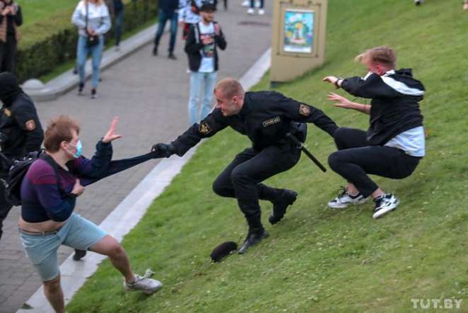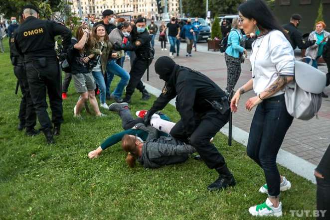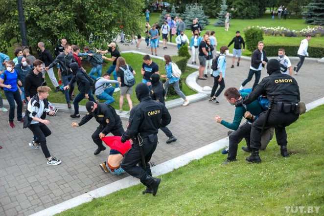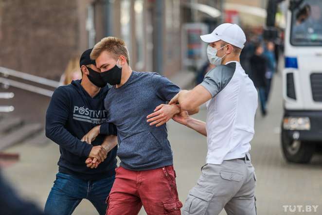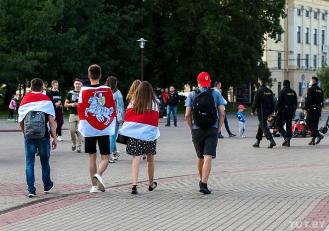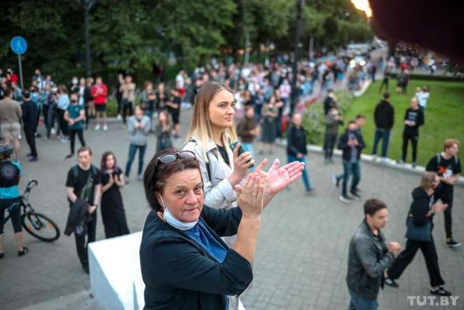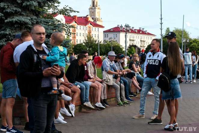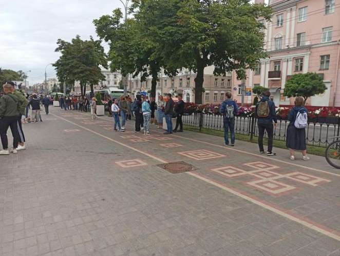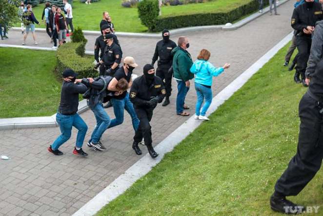 В Гомеле — задержали в ходе стрима съемочную группу издания «Сильные новости» — Надю Пужинскую, Юрия Глушкова, Марину Дробышевскую. Людей с площадки у цирка разогнали. На вопрос, почему нельзя гулять, от ОМОНа был получен ответ: «Гулять можно, но не здесь».