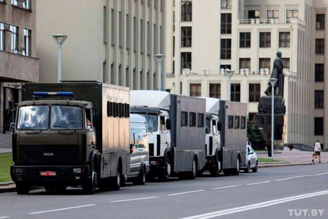 В Минске к месту скопления людей на Независимости прибыли заместитель главы МВД Александр Барсуков, глава ГУВД Мингорисполкома Иван Кубраков и командир ОМОН ГУВД Мингорисполкома Дмитрий Балаба — в сопровождении трех автозаков, двух автобусов и нескольких микроавтобусов, набитых сотрудниками милиции и ОМОНом.