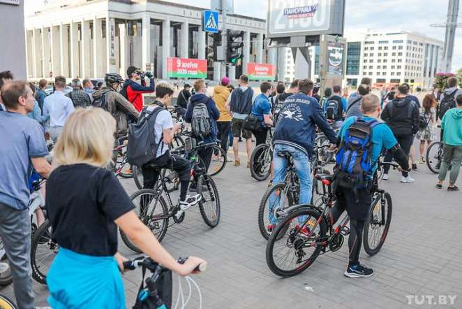В Гродно на площади Советской собралось около 200 человек. Люди иногда хлопают, иногда кричат «Жыве Беларусь». Гродненские велосипедисты устраивали велопробег и тоже приехали на площадь.