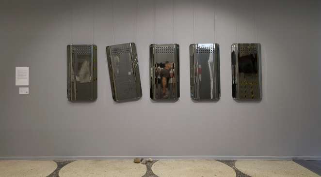 Инсталляция представляет собой пять зеркальных объектов, представляющих собой полную копию противоударного щита «Витраж-АТ», которым оснащаются спецподразделения различных правоохранительных органов. Щит используется для защиты от ударов камнями, палками, кувалдой, молотом и другим «оружием» пролетариата.