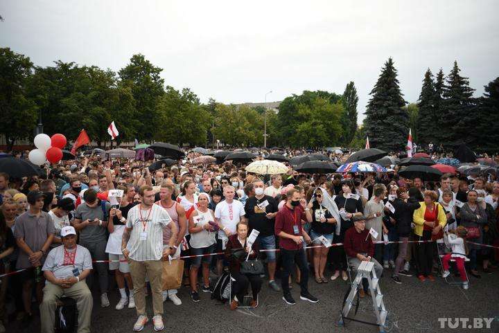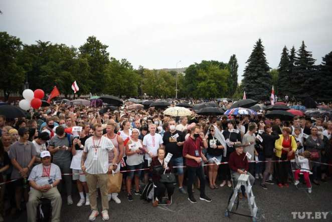 Организаторы митинга через каждые полчаса обращались к собравшимся с просьбой не поддаваться на провокации, если таковые будут, а сохранять дружелюбие и спокойствие. Охранники объединенного штаба — крепкие молодые люди, о которых ранее Тихановская рассказала, что все они волонтеры, которые абсолютно безвозмездно обеспечивают безопасность женщинам, — пристально следили за порядком.