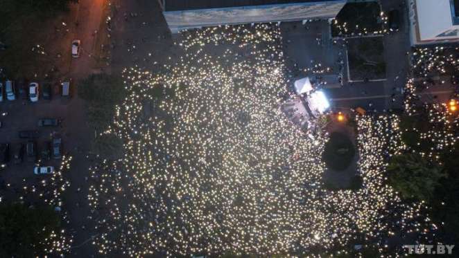 Когда стемнело, гомельчане зажгли фонарики своих мобильных — так же вчера поступили пришедшие на встречу с Тихановской в Бобруйске. Ровно в 22.00 митинг закончился.