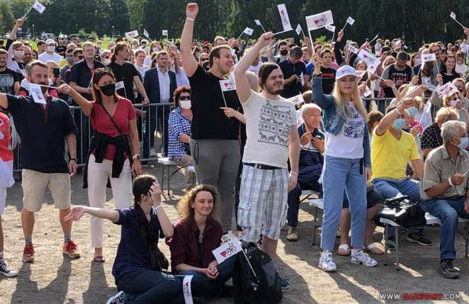 19.25. Светлана Тихановская перед выступлением дала в прямом эфире короткое интервью Радыё Свабода. Она сказала, что волнуется, но то количество людей, которые пришли, дают ей силы. Также отметила, что сегодня получила плохие новости о муже Сергее Тихановском, и будет обращаться к собравшимся, как будто разговаривает с супругом.