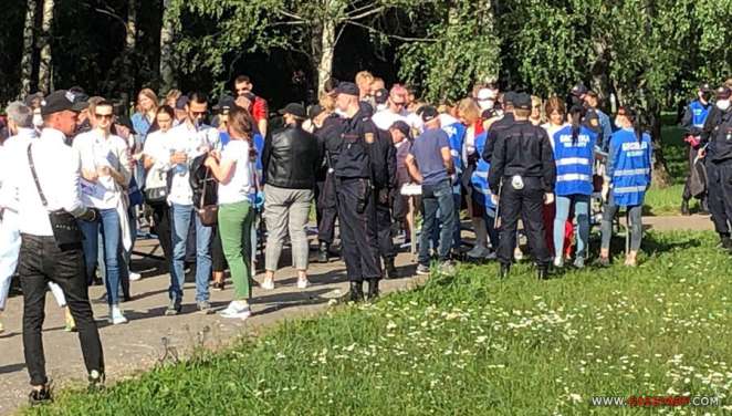 Центр парка заполнен, на пунктах пропуска небольшие очереди. С прилегающих улиц, в том числе Сурганова, люди продолжают подтягиваться.
