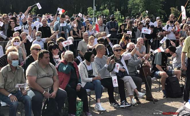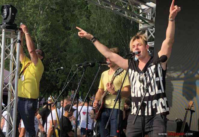 18.20. В центре парка пока проходит концерт. На площадке перед сценой люди с большего соблюдают социальную дистанцию. Многие из присутствующих в масках.