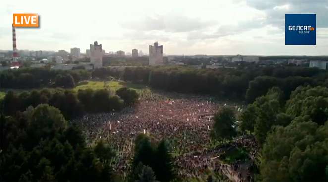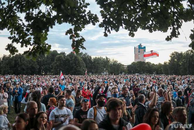 19.40. По оценкам правозащитников, по данным на 19.00 на митинге в Минске — не меньше 25 тысяч человек.
