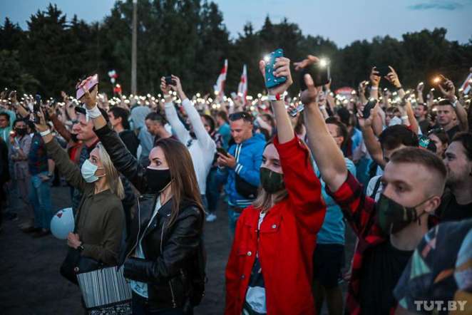 21.30. Выступления Тихановской, Колесниковой и Цепкало были очень эмоциональными и личными. Каждая их «трех граций» еле сдерживала слезы, а порой – это не удавалось. Люди очень чутко реагировали и поддерживали каждую из представительниц объединенных штабов. Наиболее частыми репликами, которые подхватывали тысячи людей: «Молодец!», «Света!», «Позор!» (в адрес действующей власти), «Перемен!».