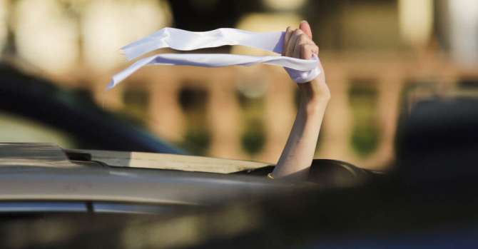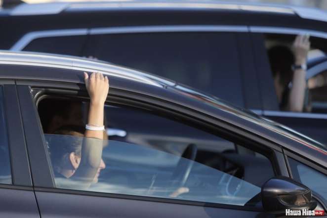 Ровно в 19.00 водители начали опускать стекла машин, включать громко песню «Перемен» и поднимать руки с белыми браслетами.