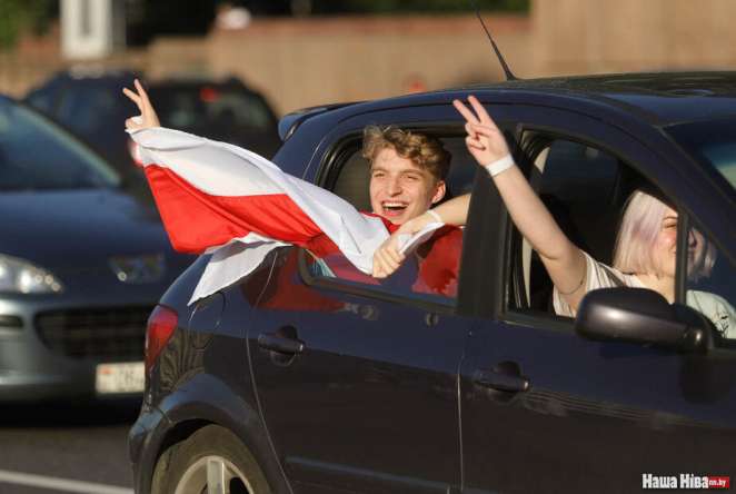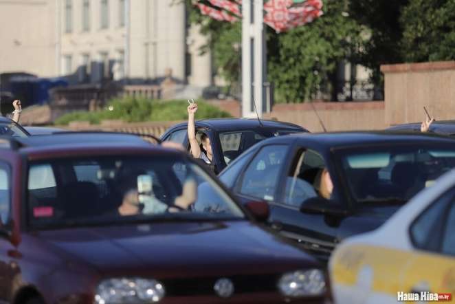 Флешмоб происходит на минских проспектах: люди включают «Муры» и «Перемен»