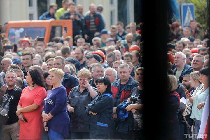 «Мы требуем, чтобы господин Лукашенко в лучшем случае сел в свой самолет и покинул страну», — высказался один из рабочих МАЗа от лица коллектива.