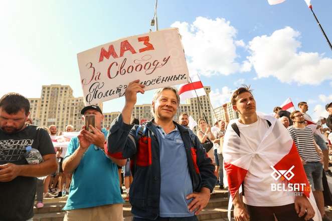 Общая забастовка работников минских заводов: МАЗ, МЗКТ и др. Работники ходят по Минску и собирают коллег. 17 августа, 2020 г. Минск, Беларусь. Фото: Ирина Ареховская / Vot-tak.tv / Belsat.eu