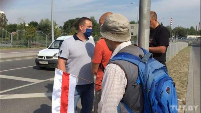 Сотрудник в штатском попытался его вернуть, мужчины ему не позволили, попросив представиться. Человек в штатском (в маске) под крики «Уходи!», удалился в неизвестном направлении.
