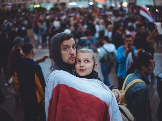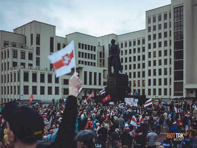 Мирный протест под дождем на площади Независимости. 19 августа, 2020 г. Минск, Беларусь. Фото: Александр Васюкович / Vot-tak.tv / Belsat.eu