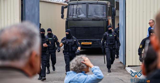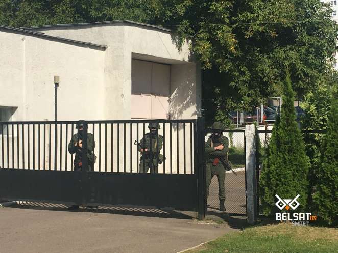За забором БТ стоят военные с автоматами. Фото: Belsat.eu