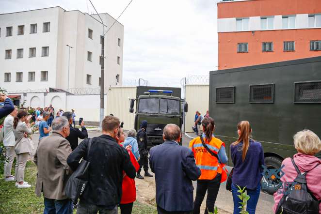 На ИВС и ЦИП Окрестино задержанным выдают вещи. Минск, Беларусь. 15 августа 2020 года. Фото: Ирина Ареховская / Vot-tak.tv / Belsat.eu