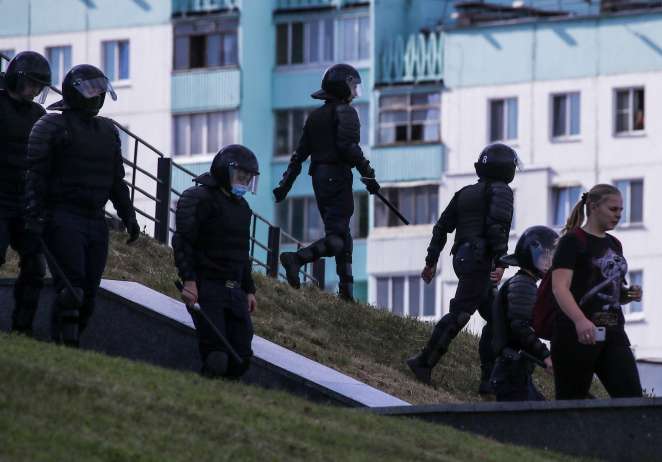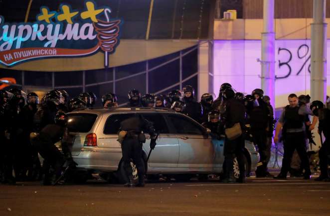 Силовики в районе ст. метро Пушкинская. Минск, Беларусь. 11 августа 2020 года. Фото: Валерий Шарифулин / TASS / Forum