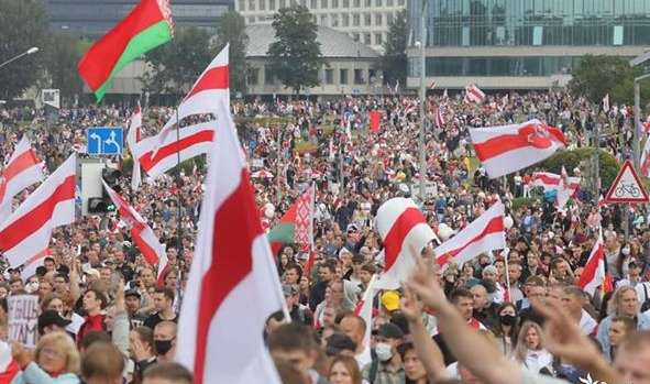 Крупнейшая акция в Минске собрала около 100 тысяч человек (по оценке TUT.BY). В центр стянули силовиков. Стелу обнесли военной колючей проволокой. Лукашенко вместе с Колей полетал над протестующими на вертолете, после чего высадился в резиденции, с автоматом в руках и одетый в бронежилет. В военной экипировке был и Коля.