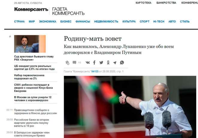 «Коммерсантъ» пишет о сформированном в России по просьбе Александра Лукашенко «резерве из сотрудников правоохранительных органов», готовом отправиться в Беларусь, если «экстремистские элементы» начнут захватывать административные здания.