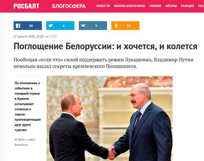 — Когда государственной телекомпании удается взять интервью у президента РФ, это всегда означает, что Путину необходимо срочно о чем-то заявить. И скорее всего такая необходимость была связана именно с Беларусью.