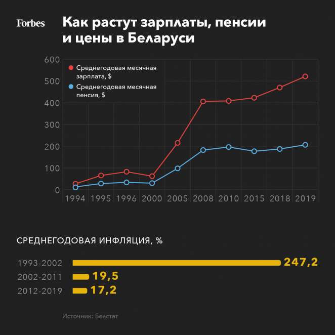 Эти предприятия также оказались бенефициарами высокой инфляции, поскольку могли кредитоваться в белорусских рублях по искусственно заниженным ставкам. В 1994-2000 годах цены в Беларуси росли в среднем на 520% в год, с 1994 по 2019 год включительно ее экономика входила в топ-20 самых неблагополучных в мире по инфляции. Доступ к дешевым рублевым кредитам под 3–10% годовых — при инфляции в 7–10 раз выше — имело и белорусское правительство. Таким образом и сами власти, и их коммерческие фавориты оказались бенефициарами высокого инфляционного налога.