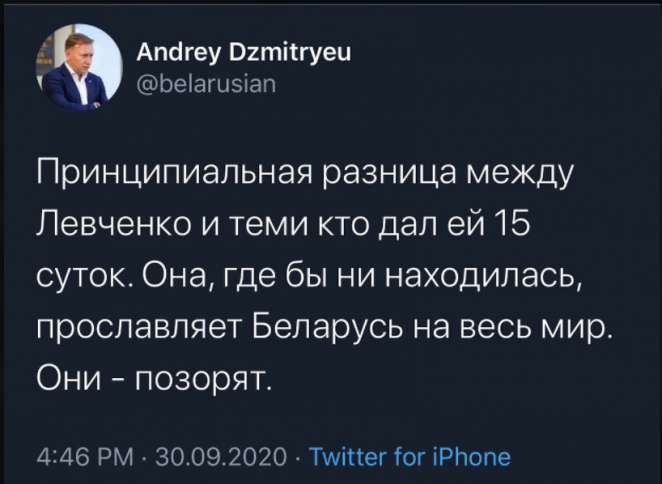 «Спортсмены, которые поддержали арестованную Левченко, вы крутые порядочные люди, спасибо! У остальных хочется спросить, как можно вообще выходить на площадку, как можно не остановить <...> весь баскетбол в стране, когда девушку, гордость страны кидают в тюрьму за то, что она посмела осудить насилие?! У вас хоть капля гордости есть?»