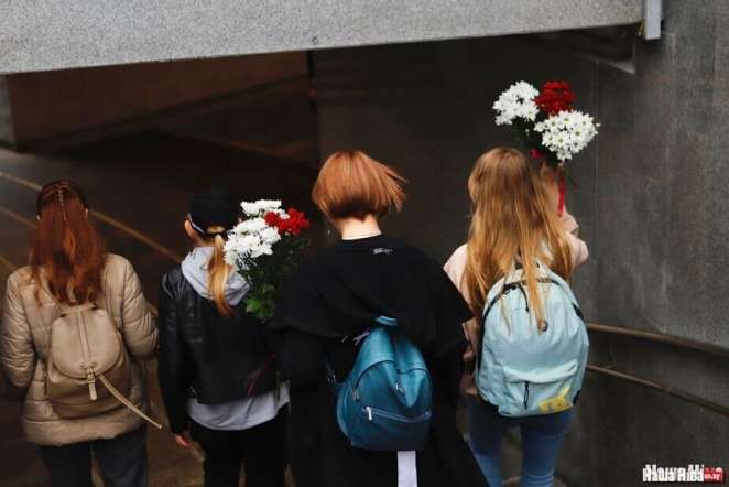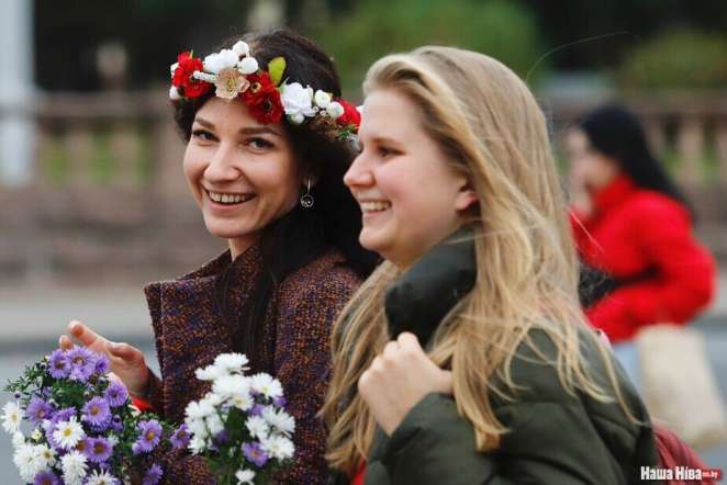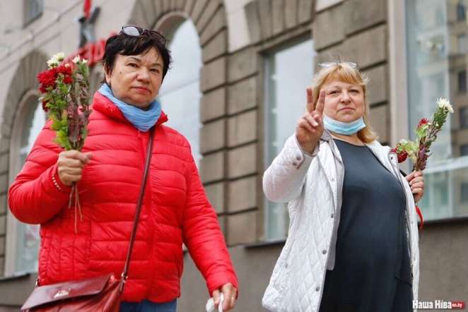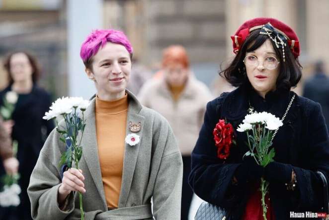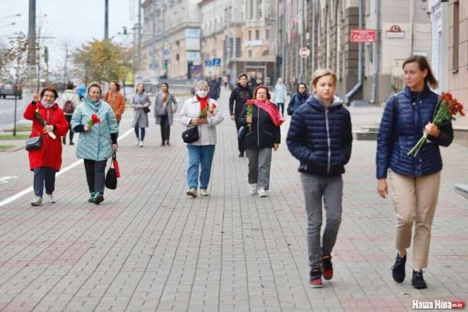 Сотни женщин вышли на улицы Минска с цветами в руках