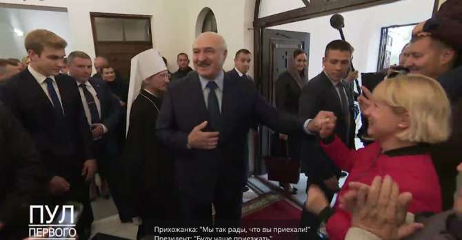 Особенно впечатляет, сколько секьюрити охраняет Лукашенко в небольшом храме, заполненном приветливыми, судя по сюжету, прихожанами.