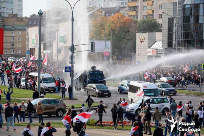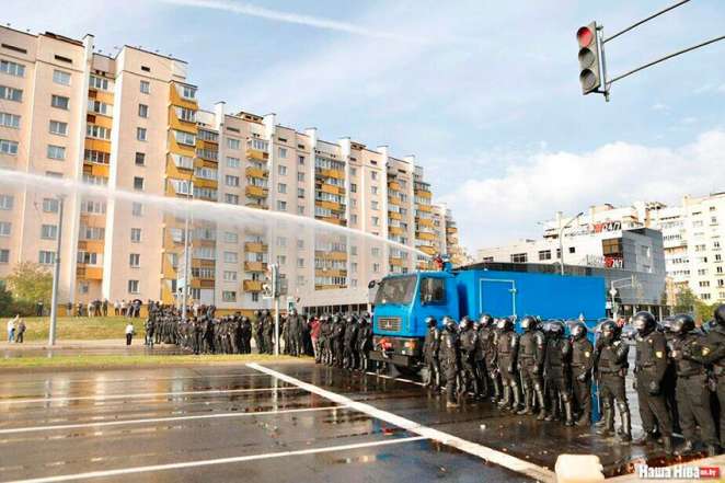 «Зафонтанировал!» Как на марше в Минске демонстранты противостояли водометам