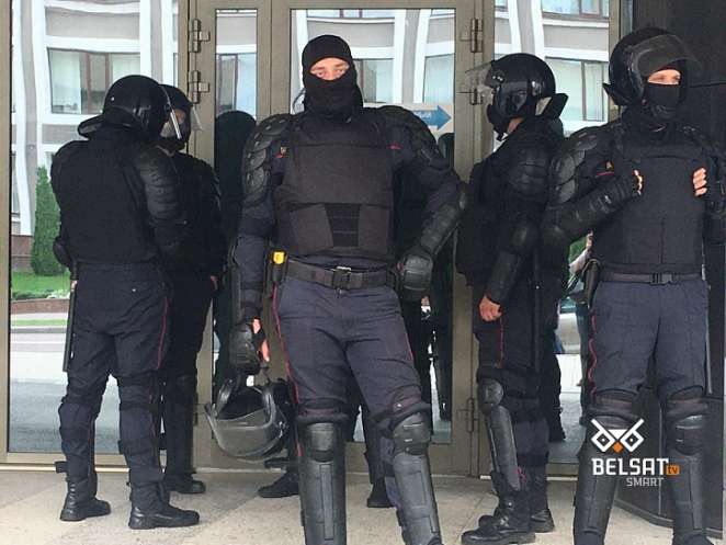 Так называемые космонавты, без опознавательных знаков со спрятанными лицами. Фото Belsat.eu