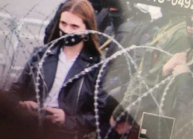 Однако Ксению Худолей пользователи соцсетей узнали сразу. Ее заметили еще на воскресном марше 23 августа — девушка обращала на себя внимание, так как стояла возле стелы по ту сторону колючей проволоки, рядом с военными. Впоследствии Ксения не раз будет вещать с акций протеста.