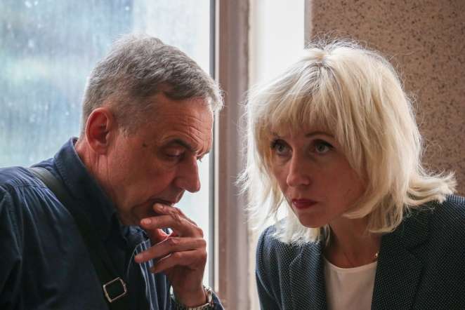 Адвокат Марии Колесниковой Людмила Казак с отцом своей подзащитной. Фото: Наталия Федосенко / ТАСС