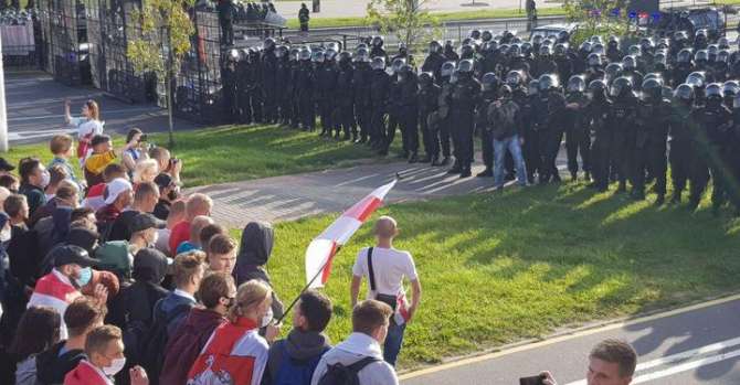 Напомним, в воскресенье, 13 сентября, белорусы в очередной раз вышли на протест, который назвали Марш героев. Колонна людей направилась в сторону коттеджного поселка Дрозды, где живут некоторые чиновники. На проспекте Победителей и прилегающих улицах было очень много силовиков, спецтехники. Движение для транспорта в этом районе было ограничено.