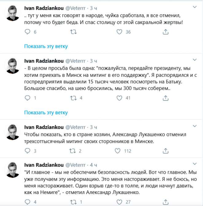 Разговорчики в сети: «Чтобы показать, кто в стране хозяин, Лукашенко отменил митинг»