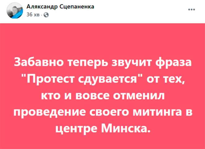 «У адмене праўладнага мітынгу цудоўнае не тое, што яго скасавалі, зразумеўшы магчымыя наступствы (змешванне з іншымі, патрэбу разгону), а тое, што не знайшлося нікога, хто б гэтыя наступствы ацаніў загадзя.