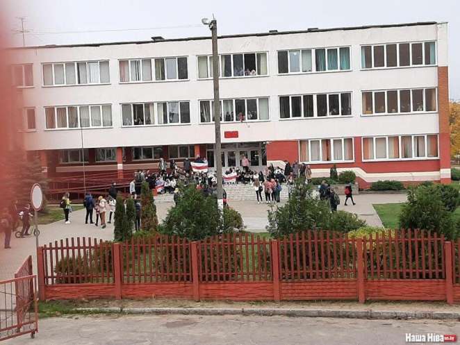 Учащиеся гимназии в Жодино вышли на сидячий протест с национальными флагами.
